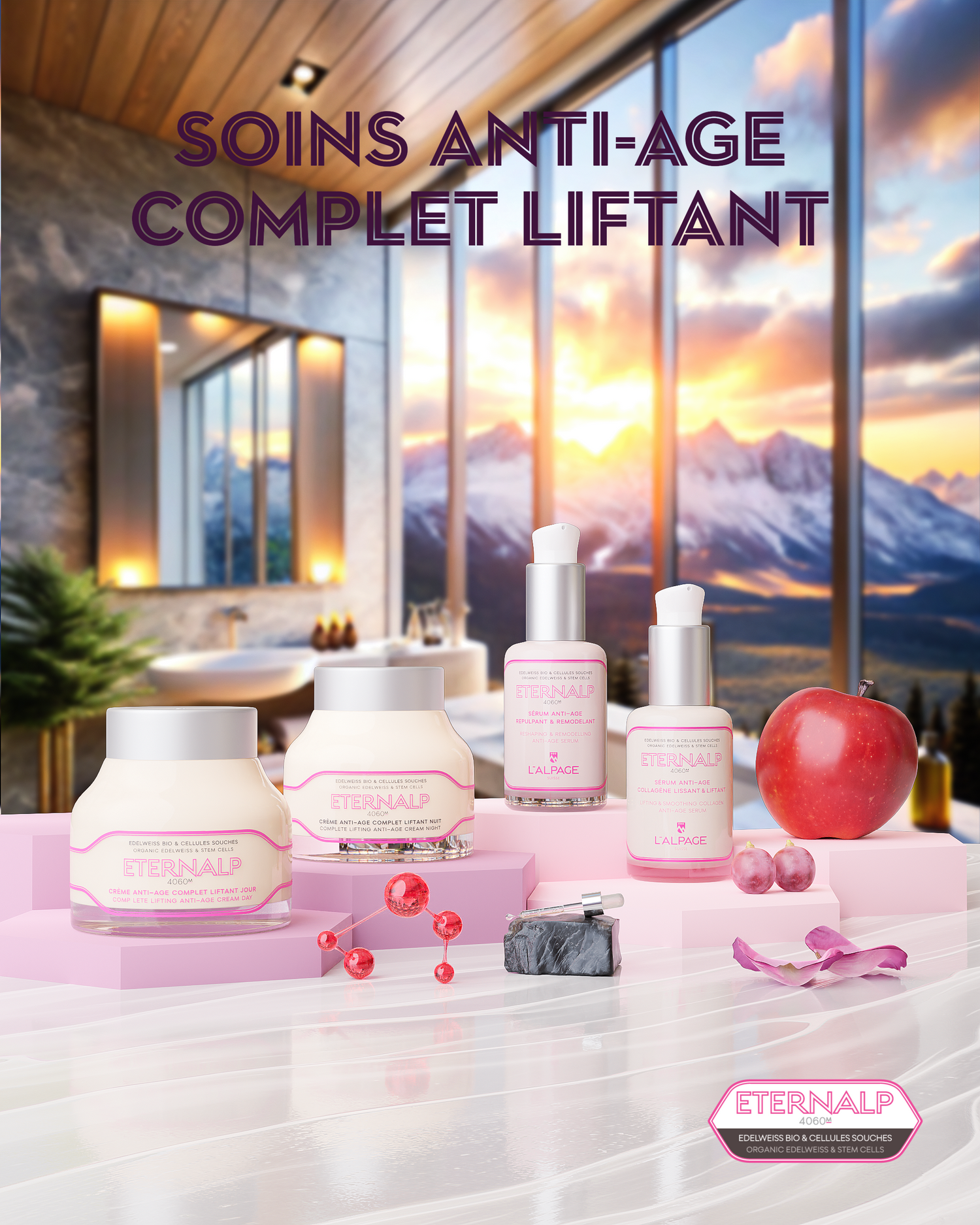 Eternalpp 4060m is a complete anti-aging biotech concentrate specially formulated to help skin aged 40 and over fight the signs of aging, with a lifting effect, thanks to an ultra-innovative combination of organic edelweiss, stem cells (very rare Swiss apple, alpine rose and grape), powerful peptides and double hyaluronic acids to help your skin fight aging in the best possible way!